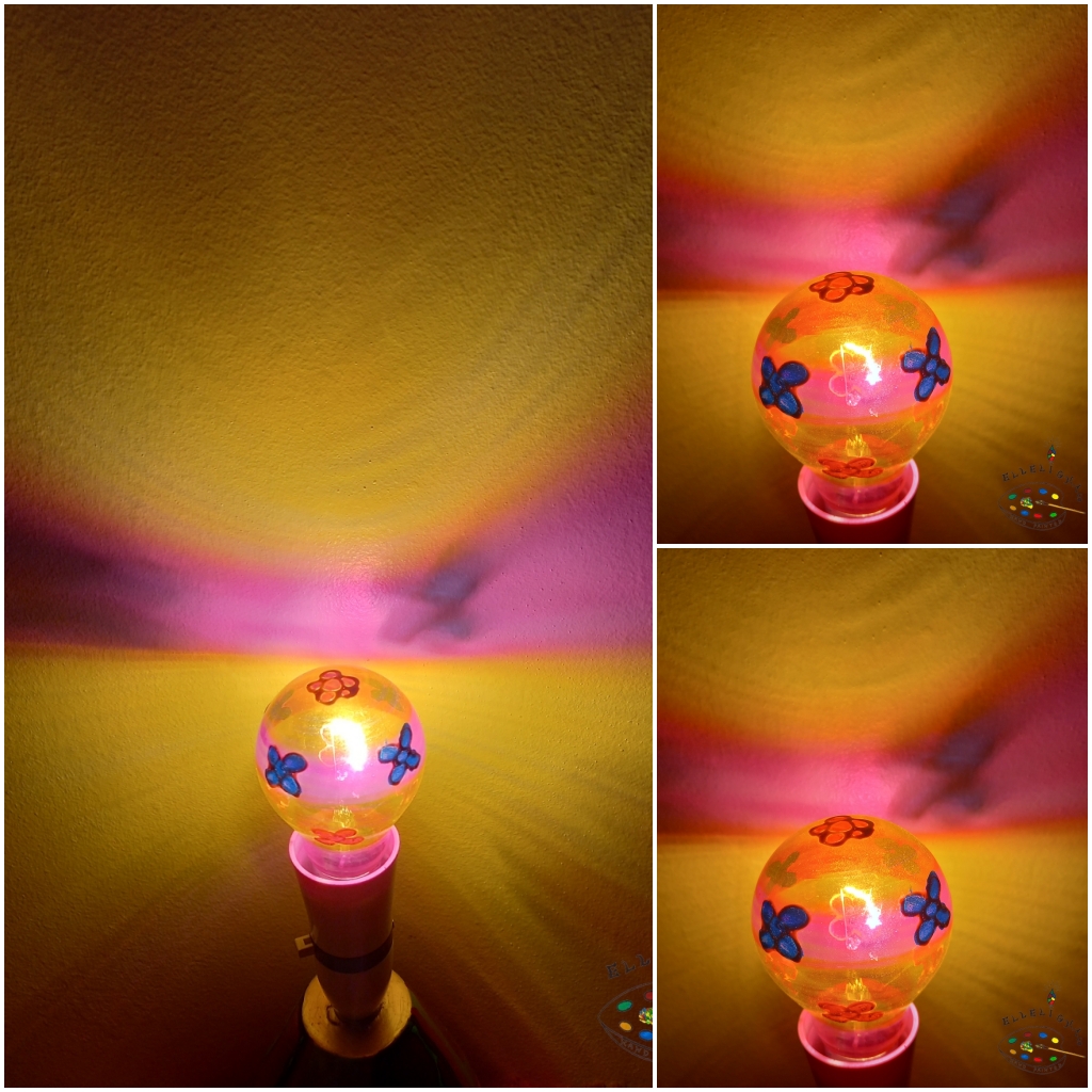 A Beautiful one of a kind rainbow light bulb in pink and yellow with blue flowers – Available in 40w in a Bayonet Cap